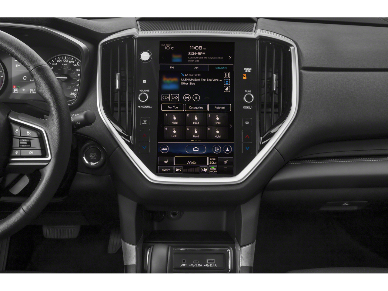 - Radio: Subaru STARLINK 11.6" Multimedia Plus System -inc: AM/FM stereo HD Radio, multi-touch gesture high resolution display screen, voice activated controls, Bluetooth® audio streaming and hands-free phone connectivity w/SMS text messaging connectivity (refer to subaru.com for cell phone compatibility), Near Field Communication (NFC), iPod control capability, SiriusXM All Access radio (4 months free trial/subscription required after), SiriusXM Travel Link (4 months free trial/subscription required after), smartphone integration for Android Auto and Apple CarPlay w/full screen view and wireless connection and STARLINK cloud applications, USB and Over The Air (OTA) audio system update, steering wheel controls for audio and Bluetooth®, 6 speakers, 3.5mm illuminated auxiliary input jack, and illuminated USB A and C input/charge ports